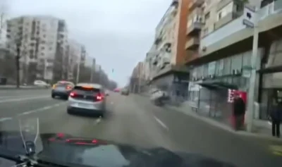 Pentru a preîntâmpina o coliziune, o șoferiță în vârstă de 30 de ani, care circula regulamentar, a virat brusc. Autoturismul condus de aceasta a lovit o bordură, a părăsit partea carosabilă și și-a continuat deplasarea pe trotuar, unde a avariat un panou publicitar și geamul unui magazin. Femeia a fost transportată la spital pentru a primi îngrijiri medicale.