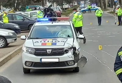 Accident grav! Mașină de poliție făcută zob de o șoferiță de 19 ani! Impact violent!