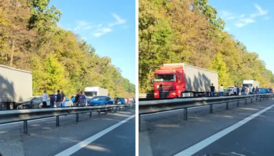 Din informațiile pe care le avem, pe Autostrada A1, din cauza traficului extrem, s-au creat ambuteiaje. Primul vehicul implicat în incident, respectiv TIR-ul oprise pentru că circulația era blocată. Deși era pe avarii, nu a fost văzut de mașina din spatele său, care, venind cu viteză s-a înfipt în spatele autocamionului. Alte patru mașini nu au putut frâna la timp și au intrat una într-alta. Șoferul TIR-ului ne-a relatat că în urma accidentului două persoane din turismele implicate au fost rănite ușor, iar circulația urmează să fie reluată probabil în jurul orei 17:30.