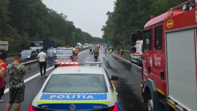 Acum! Trei mașini făcute praf în accident pe A1 Pitești-București! O persoană grav rănită!