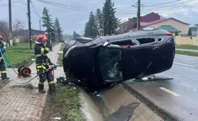 ALERTĂ! Impact devastator în această dimineață: Mașină răsturnată, trafic blocat! Două persoane tran...