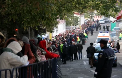 În acest moment, peste 20.000 de persoane stau la coadă, care se întinde pe aproximativ 5 kilometri, și timpul de așteptare estimat este de cel puțin 8 ore. Primii pelerini s-au așezat la rând încă din jurul orei 02:00, noaptea trecută.