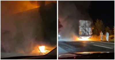 Haos pe A1 București – Pitești! TIR cuprins de flăcări violente! Trafic paralizat!