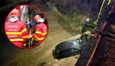ÎNFIORĂTOR! Un tânăr a PLONJAT cu mașina în râu! A fost dus de urgență la spital!