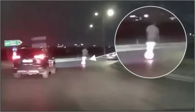 Incredibil! Tânăr prins cu trotineta pe autostradă! Imagini șocante!