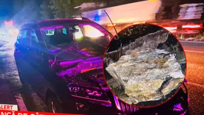 Pericol pe DN6! Mașină distrusă de rocile prăbușite de pe versanți! Este stare de alertă!